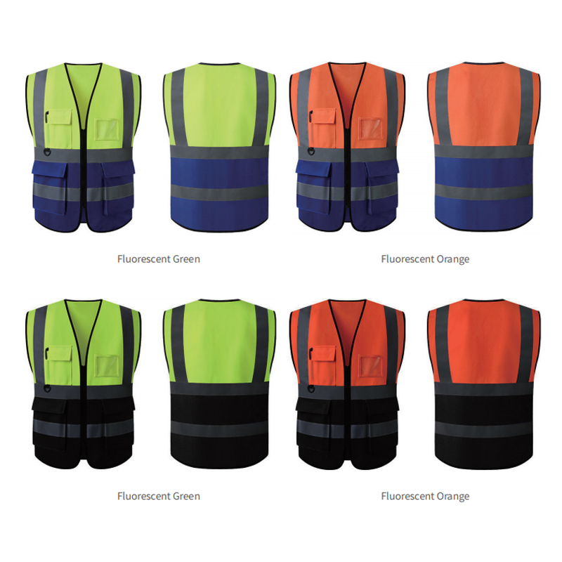 Il gilet riflettente con cerniera color blocking multitasca a quattro barre è dotato di quattro strisce riflettenti, sapientemente distribuite sul petto e sulla schiena, migliorando efficacemente la visibilità di chi lo indossa di notte o in condizioni di scarsa illuminazione, migliorando così notevolmente la sicurezza. Le tasche multiple offrono una maggiore comodità a chi lo indossa. Vari oggetti necessari come telefoni cellulari, chiavi, strumenti, ecc. possono essere facilmente trasportati senza la necessità di borse o zaini aggiuntivi, rendendo le attività all'aperto più convenienti. Diversamente dai tradizionali giubbotti riflettenti, questo giubbotto adotta un design a blocchi colorati, rendendo l'aspetto generale più alla moda e personalizzato, aggiungendo al senso della moda e al fascino personale di chi lo indossa. Questo design innovativo non solo migliora la sicurezza, ma rende anche i giubbotti riflettenti non più noiosi e più in linea con le tendenze della moda. Il design con cerniera rende più facile e veloce indossare e togliere. Non è necessario tirare o slacciare bottoni complicati, basta tirare delicatamente la cerniera per indossare e togliere, risparmiando tempo e fatica. Questo design non solo tiene conto delle reali esigenze di chi lo indossa in caso di emergenza, ma migliora anche il comfort e la comodità di indossarlo.
